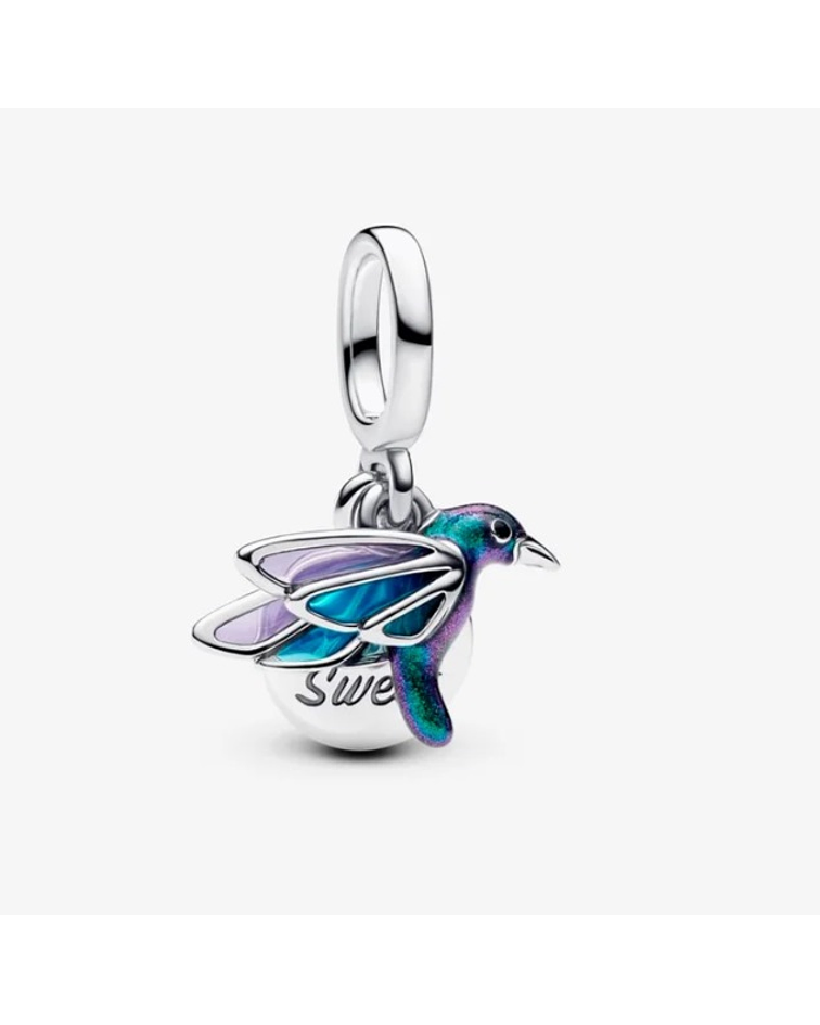 Charm Colgante Doble Colibrí: Este brillante charm de un colibrí creado en plata de primera ley se presenta con el mensaje "Life is Sweet" (La vida es dulce, en español). Las alas de esmalte transparente y el esmalte iridiscente del cuerpo capturan la ligereza y la belleza de un colibrí volando. Llévalo en tu pulsera de charms, collar o pendientes favoritos como recordatorio de que debes disfrutar de los dulces momentos de la vida.