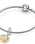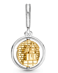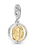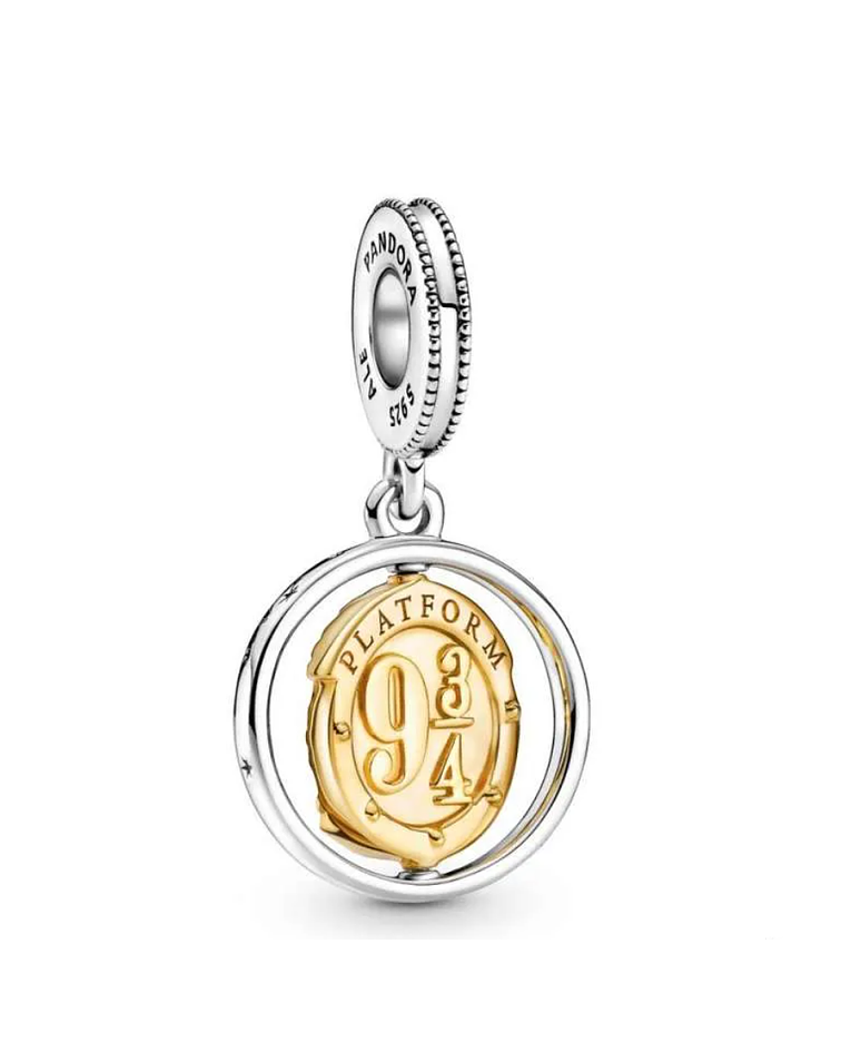 Asegúrate de tomar el Expreso de Hogwarts a tiempo, siempre con este dije colgante giratorio de Harry Potter, plataforma 9 3/4 y Hedwig. Este amuleto de dos tonos presenta un anillo de plata esterlina con un disco enchapado en dorado que gira para revelar las maletas de Harry y Hedwig sentada junto a su jaula de pájaros .