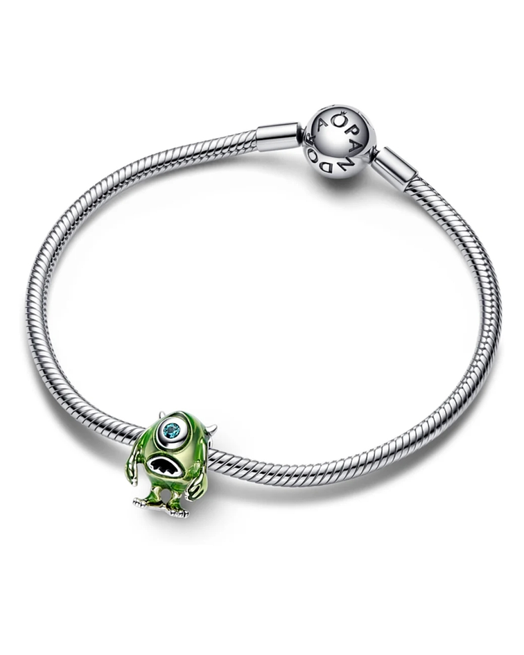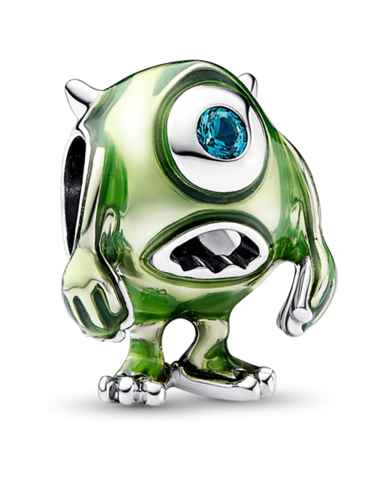 Captura el poder de las risas y la amistad con el Charm Mike Wazowski de Disney Pixar. Este charm en plata de primera ley y embellecido con esmalte de color verde aplicado a mano refleja la icónica expresión facial de Mike y su único ojo decorado con un cristal artificial verde. El esmalte es transparente, aportando al charm un metálico gracias al brillo de la plata de primera ley que hay debajo. Llévalo junto con su amigo Sulley y los otros charms de la colección Disney., así tu pulsera te recordará tus momentos monstruosos favoritos.