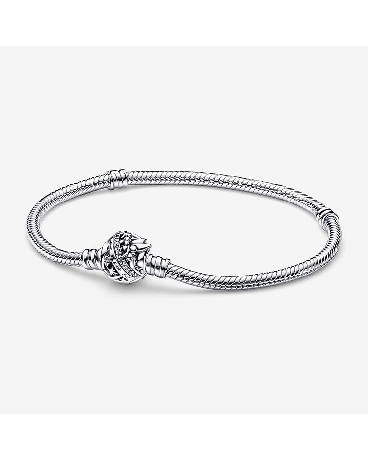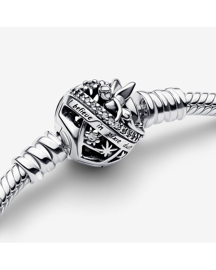 Haz que cada día sea mágico con nuestra Pulsera Cadena de Serpiente con Cierre Campanilla de Disney. El cierre redondo de filigrana presenta a Campanilla sosteniendo una cinta de brillante pavé, así como el mensaje grabado "I believe in pixie dust" (Creo en los polvos de hadas). Lleva esta pulsera en plata de primera ley embellecida con charms de Disney para revivir tus historias favoritas de Disney vayas donde vayas.